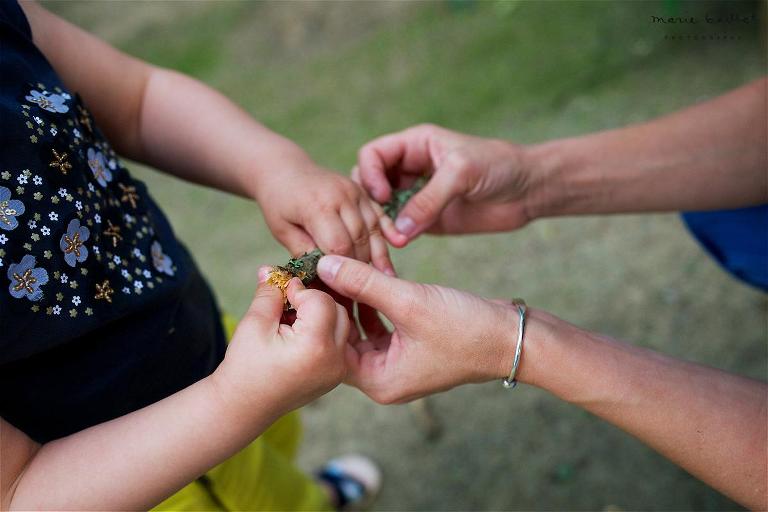 La séance photo s’est déroulée dans l’esprit « reportage de famille », c’est-à dire capturer des moments du quotidien, à savoir ici une balade dans le parc du Manoir de Kernault.